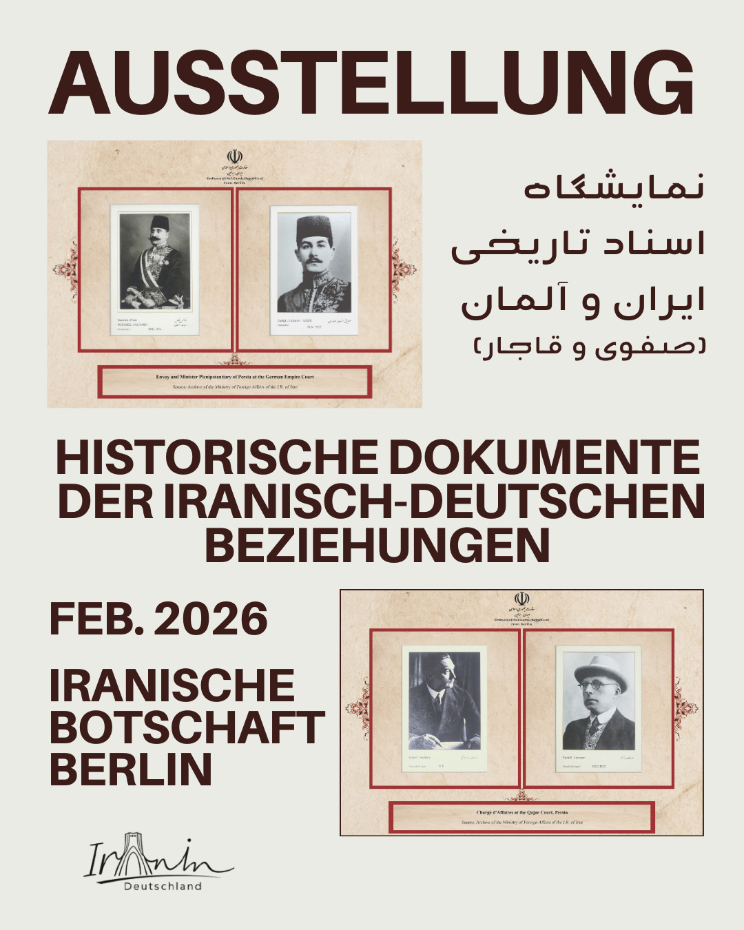 Am 10. Februar wurde in der Botschaft der Islamischen Republik Iran in Berlin eine Ausstellung zu historischen Dokumenten der iranisch-deutschen Beziehungen eröffnet.